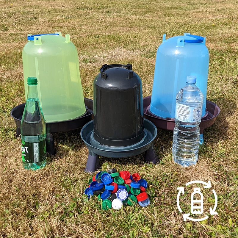 100% recyclable et durable, nous nous engageons pour une utilisation raisonnée du plastique. Ce produit est fabriqué à partir de bouteilles en plastique recyclé (bouteilles vides, bidons...), ce qui le rend UNIQUE ! La couleur de votre abreuvoir dépendra du plastique qui a été recyclé pour le fabriquer.