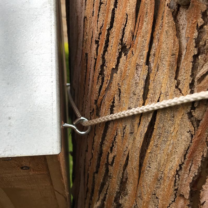 • Fixez-le sur un arbre en utilisant les anneaux fournis pour protéger l’écorce.