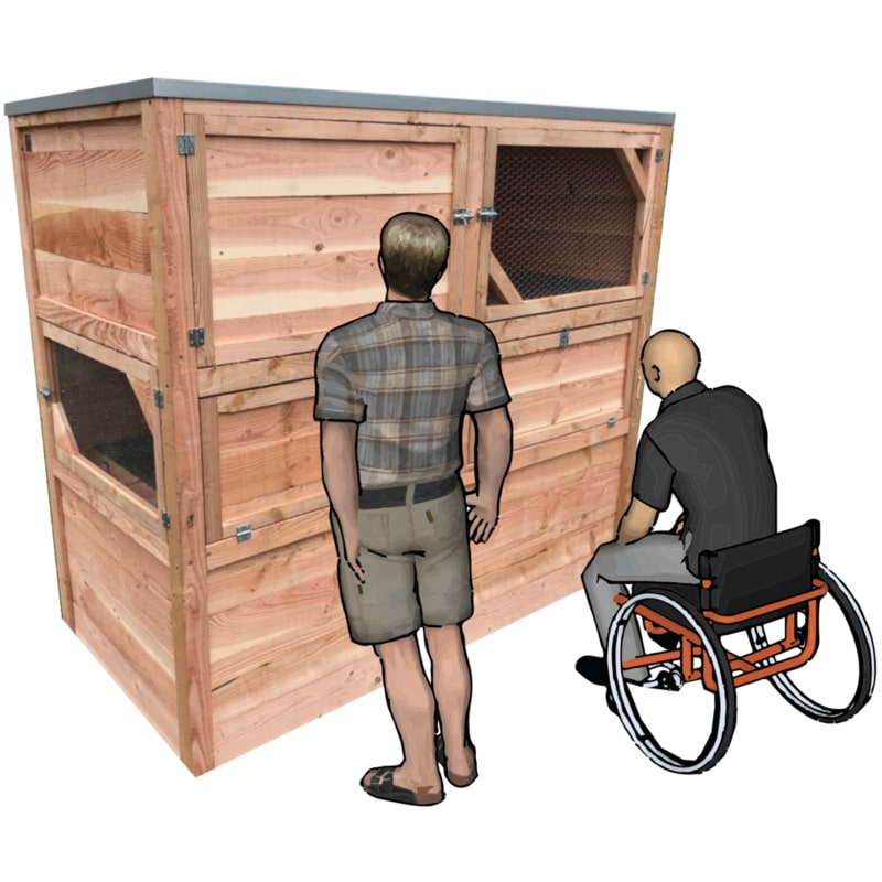 Le poulailler idéal pour les collectivités ! Développé en collaboration avec un EHPAD, ce poulailler livré monté est idéal pour les personnes âgées et à mobilité réduite.
