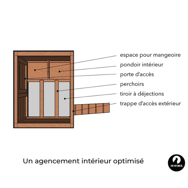 • Un espace pour placer la nourriture à l'abri dans le poulailler