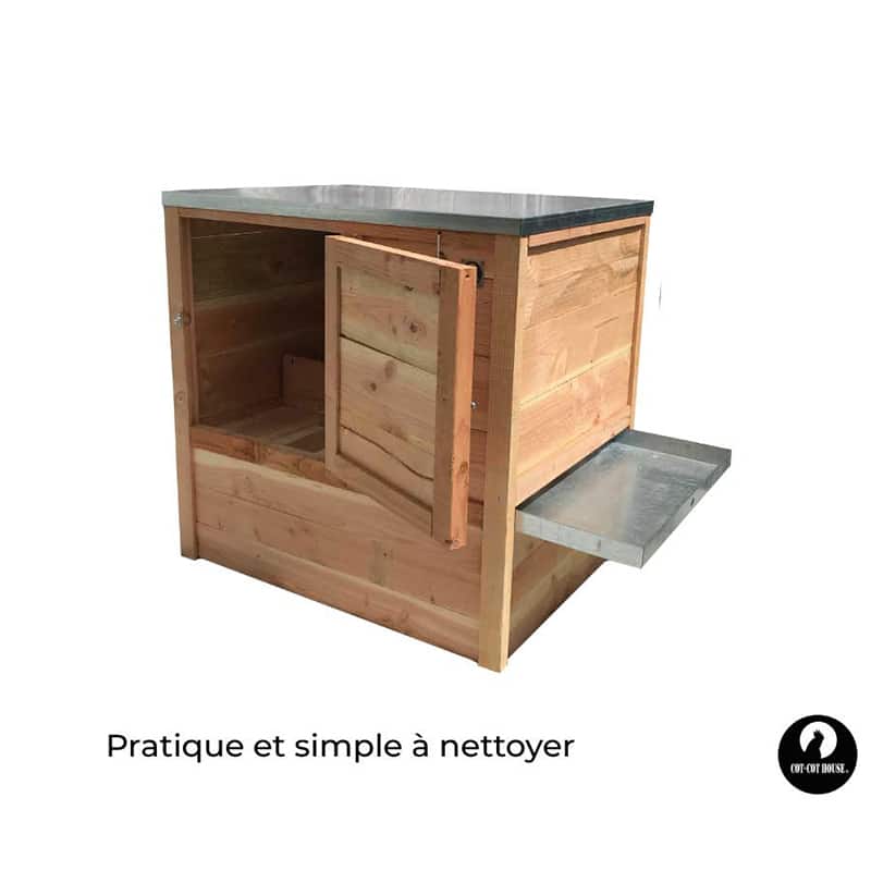 • fourni avec un perchoir, un pondoir et une rampe d’accès pour les cocottes.