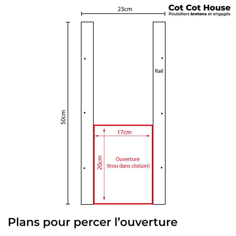 Ensemble de 2 rails et 1 trappe pour sécuriser l’entrée de votre poulailler.